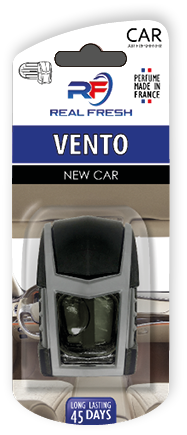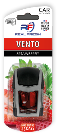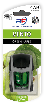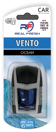 Samochodowy odświeżacz powietrza z płynem w szklanej butelce do umieszczenia w kratce nawiewu.